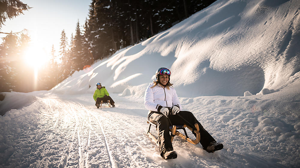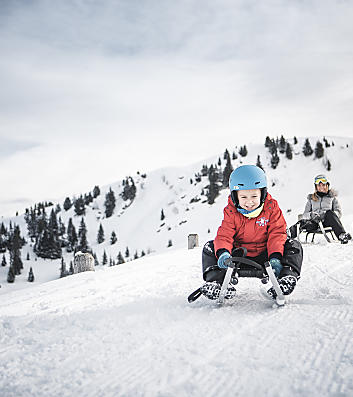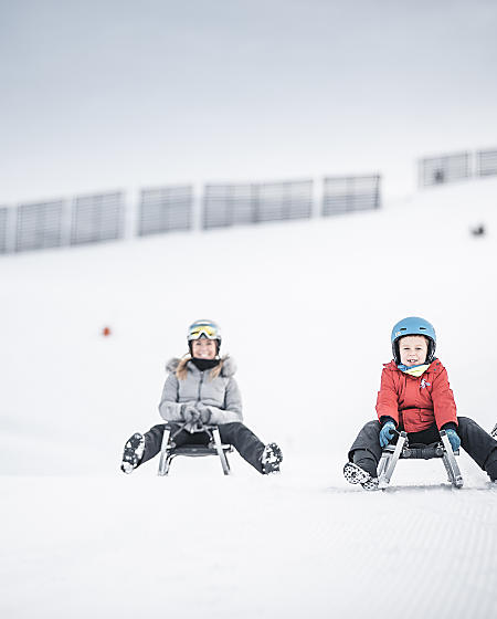 The toboggan run, which starts at the mountain station and goes down to the valley, is right here in Ratschings. A total of 5 km long. There is also such a valley run in Vipiteno. The fun is a whole 10 km from the Rosskopf mountain station back to the car park. For those who prefer to pull the toboggan up on foot, we recommend the toboggan runs