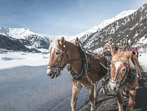 It doesn't always have to be the ski slope. Ratschings and South Tyrol have so much more to offer. Stomp through the glittering winter landscape on snowshoes. Breathe in the fresh air and enjoy the panorama. Or just go for a walk with sturdy and warm shoes. Numerous winter hiking trails await you. You can walk directly from the Tenne Lodges to the end of the valley in Falding or head out of the valley past the Tenne Chalets to Jaufensteg. Particularly romantic: a horse-drawn sleigh ride in the Ridnaun Valley.