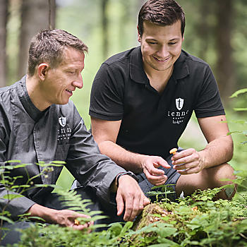 These include organic eggs from the Marginterhof in the valley Pflersch, bread from the Pardeller bakery in Sterzing, vegetables from the Zössmayr family in Mareit, trout from the fish farm in the valley Passeier, organic butter and dairy products from the dairy farm in Sterzing, mushrooms from our forests during summer, herbs from our own herb garden, Alpine honey from Ratschings, homemade apricot jam from our farm and much more.