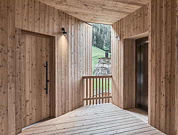 Nature was already the focus of the construction of the Tenne Lodges and the Tenne Chalets. Wood from South Tyrol, especially thousands of shingles. Silver quartzite from the valley Pfitsch built into the walls, in the wine cellar, in the whirlpool. A private spring with refreshing mountain water. Based on the criteria of the Global Sustainable Tourism Council we received a sustainability label in 2024. It derives from our efforts to use renewable energies, to reduce our consumption of valuable ressources and to avoid creating waste. We encourage our guests to follow our lead.