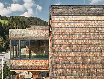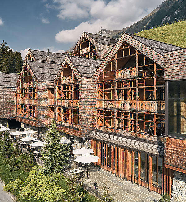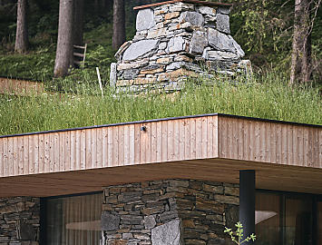 Architect Martin Gruber planned the Tenne Lodges based on a vision of a hotel that reflects the nature of Ratschings. A symbiosis of stone and wood. Not only in the facade. These materials can also be found in the interior of the 5-star hotel. The wooden floors in the lodges, the clapboard in the infinity pool, the stone wine cellar, the outdoor stone jacuzzi and much more. Simple, archaic and free.