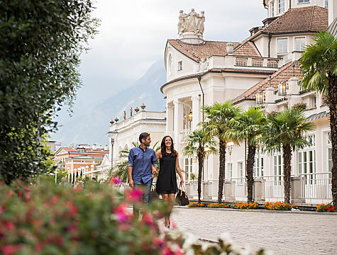 Nel 19° secolo si scoprì l'efficacia terapeutica dell'aria di Merano e subito arrivarono i primi ospiti. In ccerca di guarigione. E quando l'imperatrice d'Austria Sissi venne in vacanza, l'aristocrazia e la borghesia europea iniziarono a frequentare Merano. I magnifici edifici che sono stati costruiti allora sono visibili ancora oggi. Merano è anche conosciuta come una città di giardini. I Giardini di Castel Trauttmansdorff sono tra i più belli del mondo. Un anfiteatro naturale che circonda lo stagno centrale delle ninfee, con oltre 80 paesaggi di giardini di tutto il mondo.