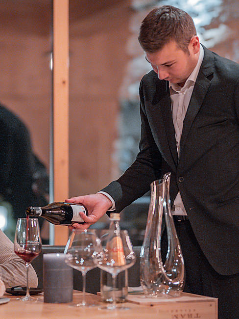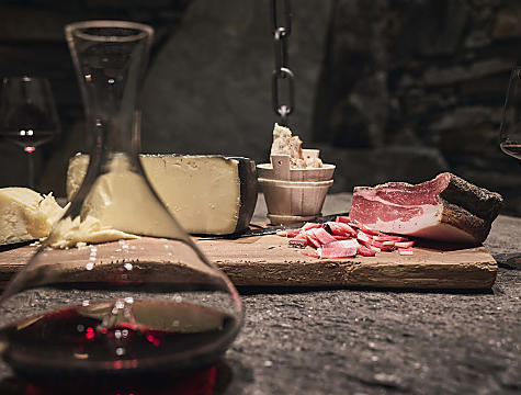 Viviamo l'amore per i vini nobili fino in fondo. Dalla progettazione della cantina in pietre di quarzite d'argento della Val di Vizze alla selezione di ogni singolo vino. La tavola nella cantina dei vini: una lastra di pietra appesa al soffitto, un luogo elegante, perfetto per feste private. Daniel Schölzhorn ha completato la formazione di Sommelier insieme al nostro manager del ristorante Simon Klotz. Perché il vino ci ispira. La possibilità di sentirlo vivo. Saremo lieti di consigliarVi i nostri vini preferiti perfettamente abbinati al Vostro piatto.Attualmente, la nostra carta dei vini contiene 500 vini.