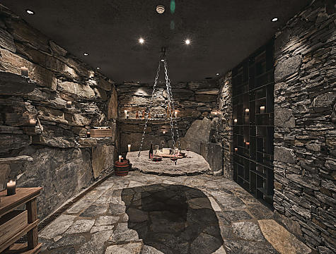 Successivamente sono state costruite la cantina dei vini e la vasca idromassaggio esterna in pietra. Le abbiamo progettate insieme al nostro architetto e al nostro scalpellino. Grazie a Oberhöller abbiamo anche recuperato una lastra di pietra di una malga di Racines, che ora pende dal soffitto ed è usata come tavolo nella cantina dei vini. Così abbiamo creato un posto molto speciale - ideato da noi stessi, come la cantinetta dei vini al bar - perfetta per degustazioni e feste private.